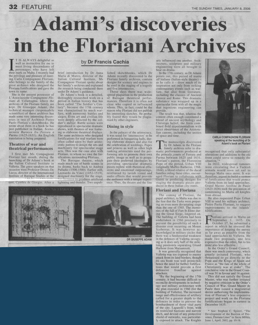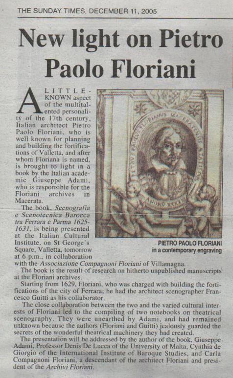 In 1632 Pietro Paolo Floriani was invited to Malta to discuss the possibility of strengthening the land front of Valletta by increasing its depth towards Marsa. After all those years a documentary has now been made of this distinguished military en
