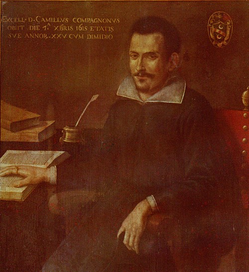 Giuliano di Gio. Battista Compagnoni, coniugatosi con Angelina Floriani di Pompeo nel 1587, ebbe sette figli: CAMILLO; Mario, Pompeo, Francesca che sposò Andrea Fina di Giacomo, Teodora coniugatasi con Pier Antonio Amici di Gio. Battista e due maschi, morti appena nati.  Il primogenito CAMILLO venne al mondo verso il 1590 e fin da giovanetto, udendo parlare sovente in famiglia delle gloriose gesta dei Floriani, suoi parenti, manifestò ardente passione per la vita militare che intraprese non appena fu atto alle armi, sotto la guida del capitano Felice Floriani, il quale era al servizio di Cosimo III granduca di Toscana. Nel 1613 ricevette il battesimo del fuoco combattendo in mare contro i pirati che infestavano le coste toscane; tre anni dopo prese parte alla campagna di Gradisca, militando sotto la bandiera della Repubblica di Venezia ed in quella occasione fece amicizia con il concittadino Narciso Aurispa che si trovava al campo veneto quale ingegnere militare. Fu a Candia nel 1617 come portabandiera della Repubblica Veneta e seguì l’Aurispa che era stato nominato comandante di due compagnie di fanti e della cavalleria isolana, nonché governatore di Canea e di Retimo. Ritornato in patria, il Compagnoni prestò sevizio nella flotta olandese che, nel 1625, era intervenuta per opporsi alle navi spagnole, le quali minacciavano i possedimenti austriaci sulle coste adriatiche. Seguendo l’esempio di numeroso condottieri italiani, anche il Compagnoni prese parte alla guerra dei Trent’anni, alle dipendenze del generale Ottavio Piccolomini e del duca di Wallestein: con il primo stette tre anni (1625-1628) e combatté valorosamente col grado di capitano all’assedio di Verrua in Piemonte (agosto – novembre 1625) e sotto le mura di Stralsulda in Germania (maggio-luglio 1628); col secondo comandò il Reggimento della Moravia nell’occupazione della Pomerania, raggiungendo il grado di Sergente Maggiore ( comandante di battaglione ). Nel settembre 1629, in seguito alla sospensione delle ostilità, le milizie italiane fecero ritorno in patria; in tale occasione il Compagnoni venne munito del seguente salvacondotto: “ Noi Alberto Wallenstein etc. … Sia noto etc… l’illustre Capitano Camillo Compagnone da Macerata havendo governato il Reggimento di Moravia, tanto a piedi, come a cavallo etc…, ordiniamo che al detto Sig. Camillo Compagnone Capitano, assieme colla sua gente, con cavalli e carri, non gli sia dato impedimento etc. Dato in Alberstatotto (?), settembre 1629. Nel congedarsi dal comandante delle truppe italiane gen. Piccolomini, questi aveva rilasciato al Compagnoni un attestato di gratitudine e di lode, del seguente tenore: “Io Fra Ottavio Piccolomini (Gran maestro del S.M.O. di Malta per la lingua italiana) etc… Il Capitano Camillo Compagnone etc… qualmente ha servito per spatio di tre anni, ciovè un anno in Italia e due in Germania nella mia compagnia per Capitano riformato; in Italia nell’assedio di Virrua, et in Germania sotto Stramusunto, come nelle altre occasioni, nelle quali si è sempre mostrato valoroso et honorato soldato in tutte le sue attioni e per fede etc… Dato in Sturgard in Pomerania li 5 marzo 1629.” Ritornato in patria, il Compagnoni fu nominato dal Papa (1632) tribuno per la sistemazione delle foci del Po e per l’arginatura del Tevere meritandosi attestati di sovrana gratitudine. Per il fatto di essersi trovato durante la sua permanenza alle armi a fianco di militari di varie nazionalità, apprese facilmente quasi tutte le le lingue europee e pertanto, essendo stato chiamato nel 1635 a Malta dal principe Barberini con l’incarico di Procuratore della nazione inglese , si ascrisse al S.M.O. di Malta quale procuratore della “lingua britannica”, con l’appoggio dello zio Pietro Paolo Floriani cavaliere di Malta ed ingegnere militare. Intorno al 1642 il Compagnoni ricevette incarico dal Papa Urbano VIII di recarsi nella provincia di Ferrara, ove si distinse con opere e consigli in affari militari. Rientrato definitivamente a Macerata nel 1644, cercò piacevole riposo dalle fatiche della guerra dedicandosi alla caccia, per cui fu eletto più volte “Signore” della ”Societas Venatorum “. Valendosi della conoscenza di ingegneria appresa durante la vita militare allestì anche spettacoli teatrali; nel 1649 fece rappresentare nella “sala della commedia” del palazzo comunale di Macerata la “Recine riedificata” di Alessandro Ciccolini (1), creando per questa commedia macchine e scenari riproducenti aspetti dell’antica colonia romana Helvia Ricina , da cui trasse origine la nostra città. Per tale motivo ilCompagnoni fu ricordato dall’accademico catenate P. Giulio Scampoli barnabita come “ Helviae saltem Ricinae, seu Maceratae, romanae coloniae, scenica structura Instaurator mirificus, Reparator festivus “.(2) L’illustre e valoroso nostro concittadino, Capit. Camillo Compagnoni, si spense il 16 maggio 1656, come risulta dal Libro C. dei morti della Parrocchia della Cattedrale di Macerata, attualmente mancante in archivio di detta Parrocchia.