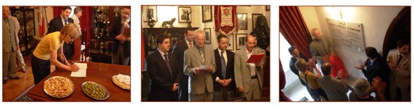 Il Presidente Signor Francis Bonett scopre la targa commemorativa per l’inaugurazione della Sala intitolata a Pietro Paolo Floriani nella sede della Societa Filarmonica Vilhena, presenti anche le autorità del Local Council di Floriana e del Comune di Macerata.